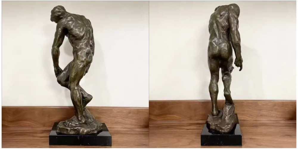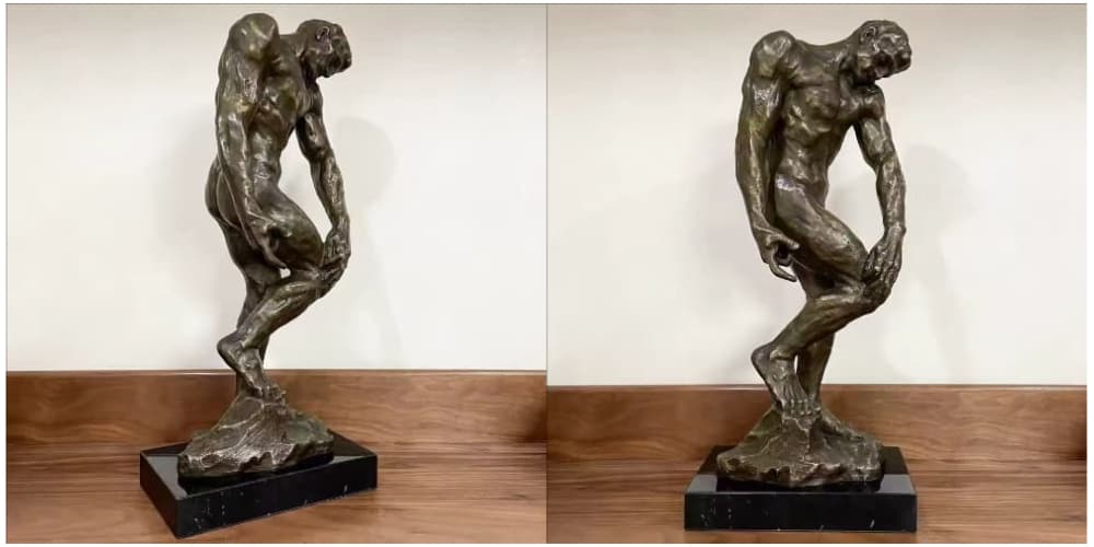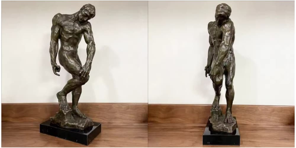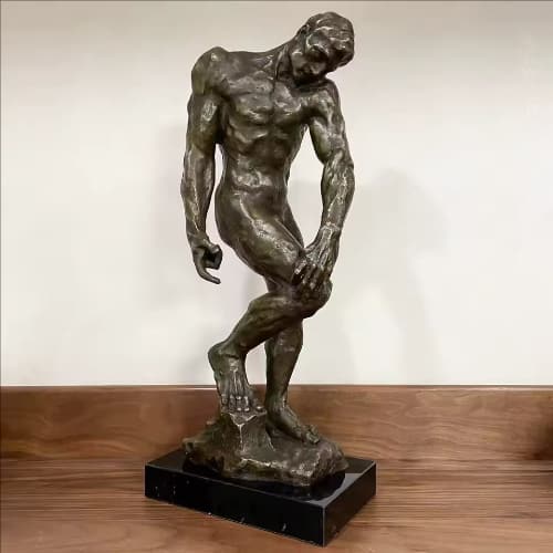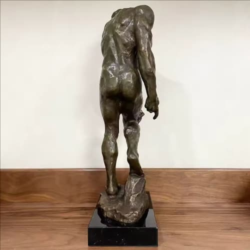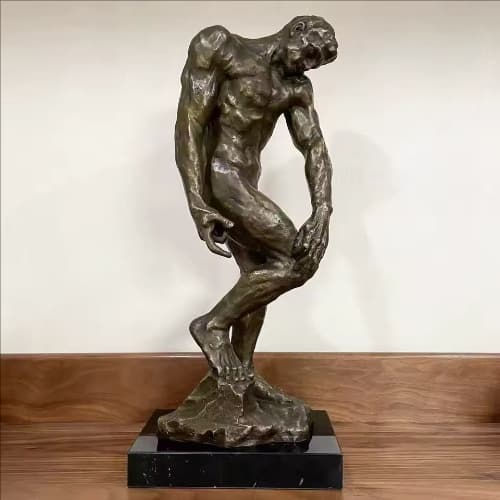 Artistically, Rodin drew inspiration from Michelangelo's techniques of the Renaissance period, but broke away from idealized aesthetics through dynamic poses, imbuing Adam's image with internal conflict.