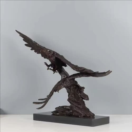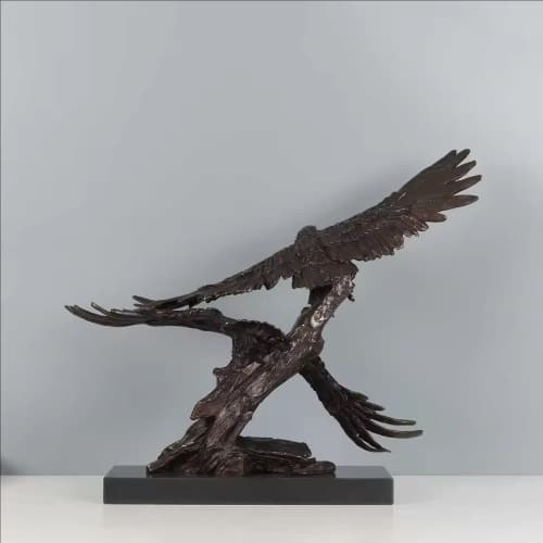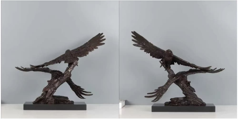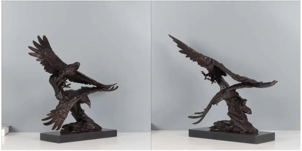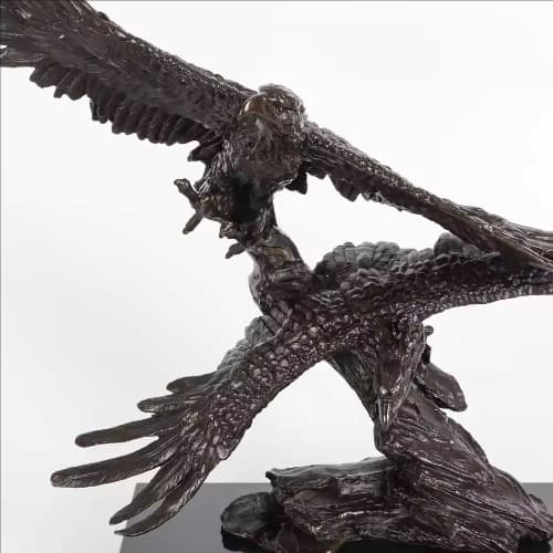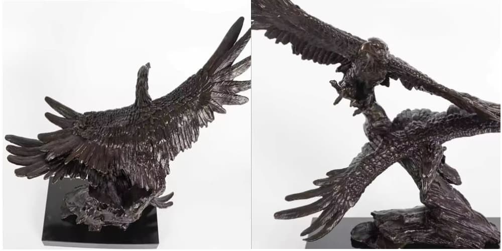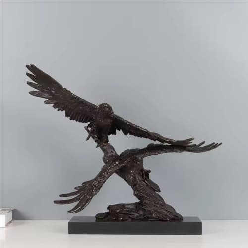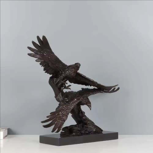 Bronze Couple Eagle Falcon Statue Animal Bird Sculpture Marble Base Gorgeous Home Office Decor Business Gift