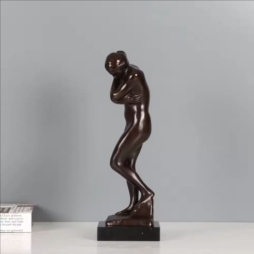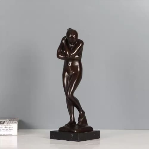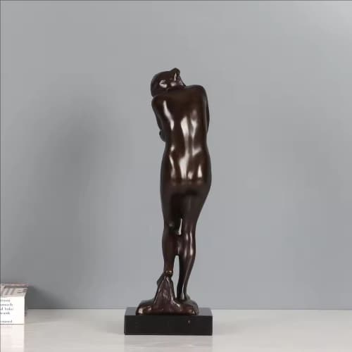 This bronze sculpture of Eve, inspired by the classic work of French sculptor Auguste Rodin, departs from traditional idealized depictions of women. It portrays Eve in a slightly restrained, downcast posture, revealing the shyness, vulnerability, and self-reflection of humanity's initial awakening. It symbolizes the intertwining of humanity, original sin, and spiritual enlightenment.