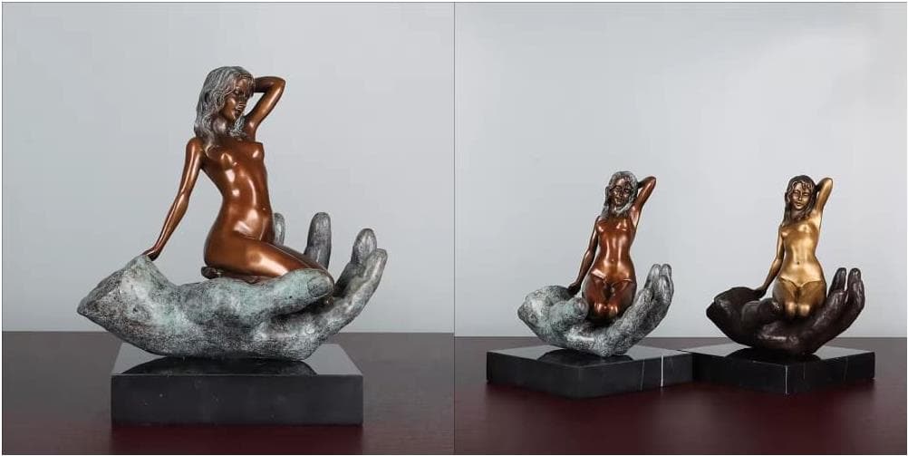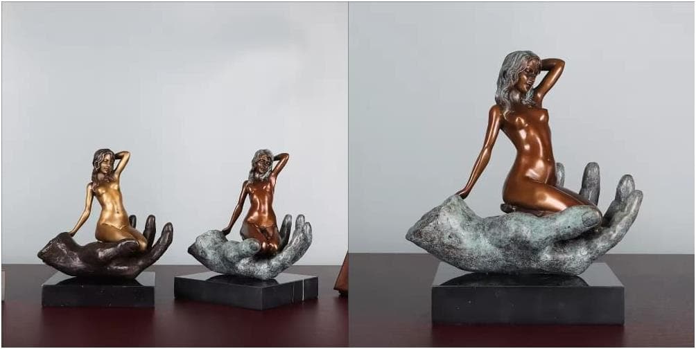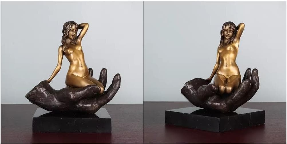 Titled "Treasure in the Palm," the narrative explores themes of "Protection" and "Surrender." The colossal hand can be interpreted as the hand of a creator or a symbol of eternal devotion and commitment. The woman’s serene, almost languid posture suggests that in the presence of this immense power, she finds absolute security rather than confinement. Beyond its erotic appeal, the sculpture explores the human yearning for sanctuary and the harmonious union between strength and softness.