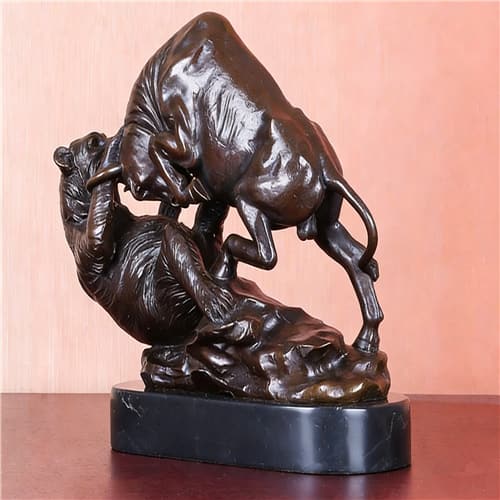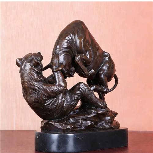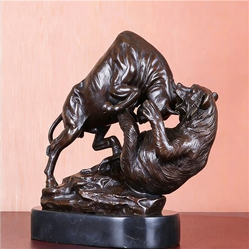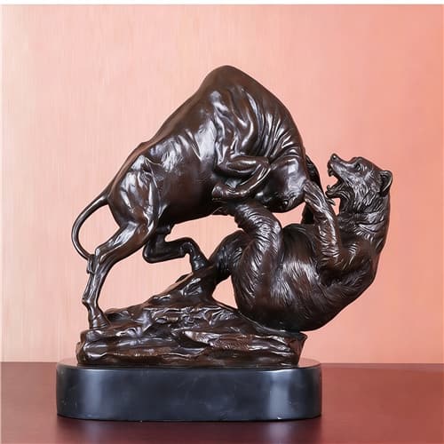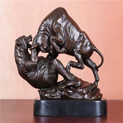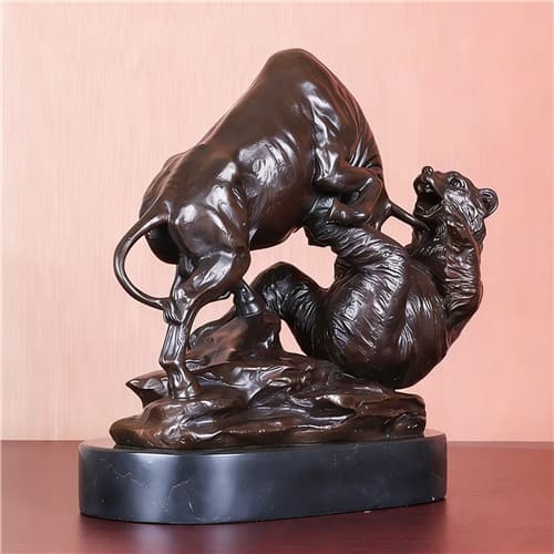 Wall Street Charging Bull and Bear VS Fighting Statue Sculpture Bronze Stock Market Animal Antique Figurine