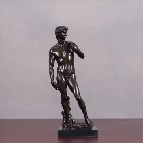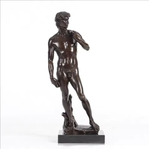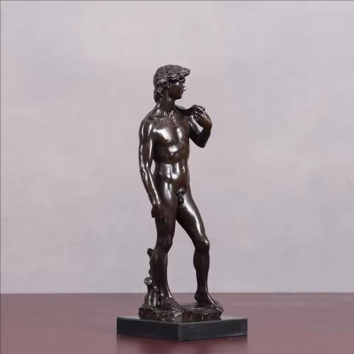 The sculpture represents courage, confidence, and intellectual strength, portraying the ideal balance between physical beauty and inner determination. Every detail, from the tense muscles to the focused gaze, reflects the Renaissance pursuit of perfection and human dignity. Cast in bronze, this replica preserves the timeless artistic spirit while adding depth, durability, and collectible value, making it a symbol of classical art and enduring heroism.