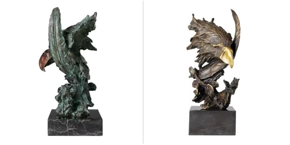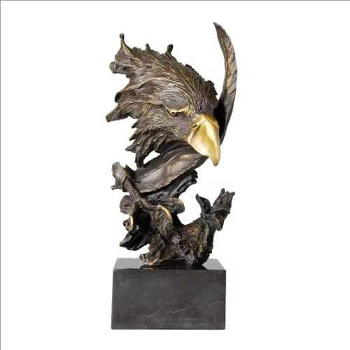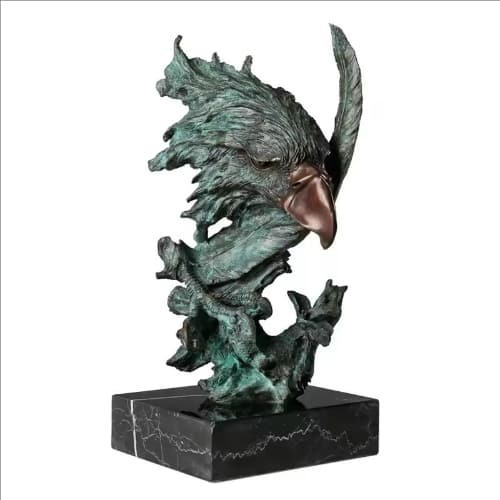 Eagle Head Statue Bronze Hawk Falcon Bust Sculpture Wildlife Animal Bird Figurine