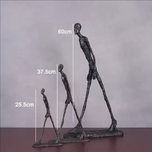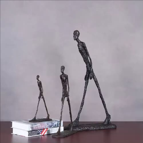 Inspired by the iconic artistic language of Alberto Giacometti, the Bronze Walking Man Statue captures the essence of human existence in motion. The elongated, slender figure represents solitude, resilience, and the relentless journey of life. With a forward-leaning posture and measured steps, the sculpture conveys both vulnerability and determination, symbolizing humanity’s struggle to move forward despite uncertainty and time’s pressure. The rough, textured surface enhances its emotional depth, reflecting the fragility and strength of the human spirit. Minimalist yet powerful, this Giacometti-style bronze sculpture serves as a timeless expression of perseverance, making it a meaningful centerpiece for modern art collections and contemporary interior spaces.