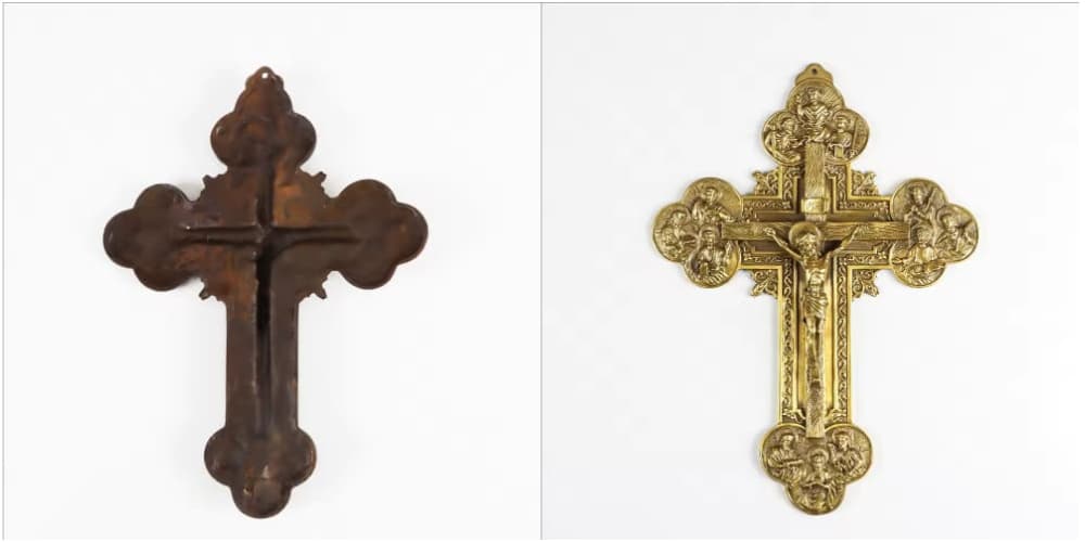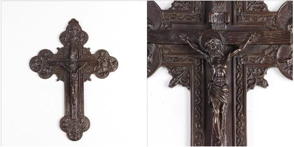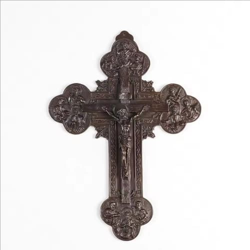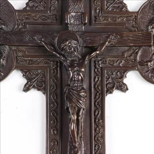 This bronze sculpture of Jesus on the cross is not only a religious work of art but also a testament to faith, conveying hope, forgiveness, and eternal spiritual values.