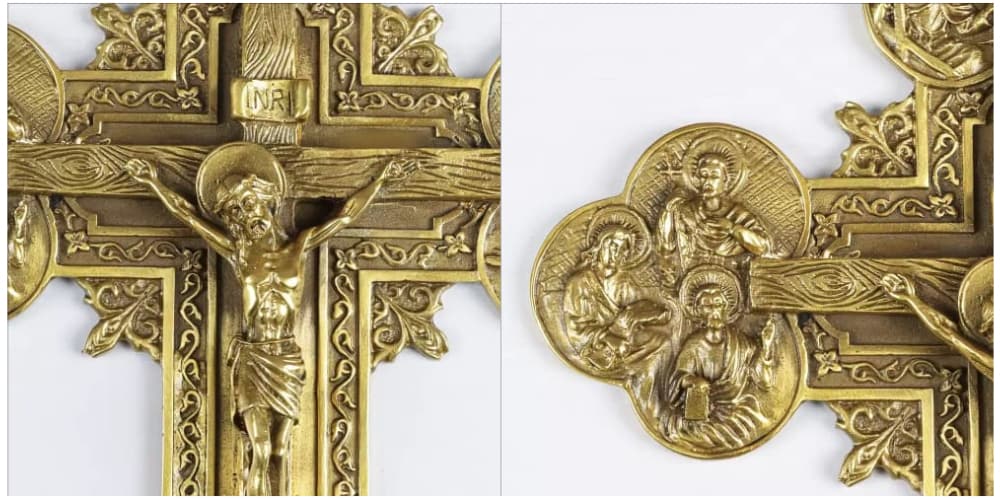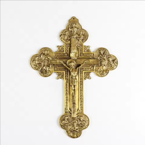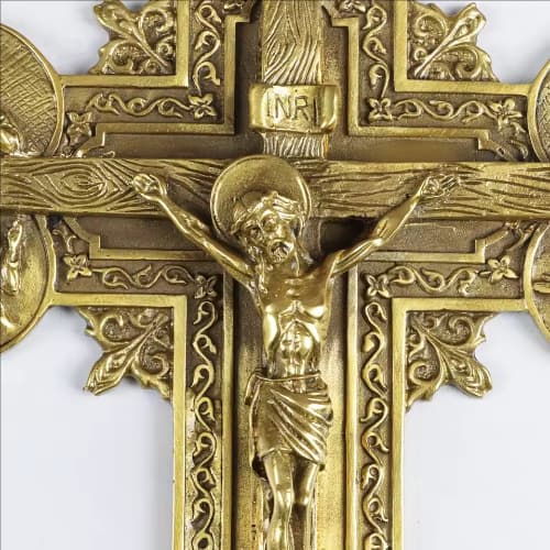 Jesus Crucifix Wall Cross Statue Brass Religious Christian Wall Hanging Sculpture