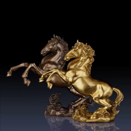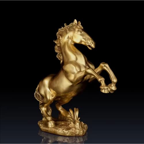 Jumping Horse Statue Bronze/Gold Brass Animal Sculpture Chinese Zodiac Art Office Desk Home Decor Ornament