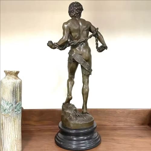 Unlike previous artists who depicted the aftermath of victory, Michelangelo chose this pre-battle moment, using the perfect male form and tense musculature to convey strength, courage, and determination
