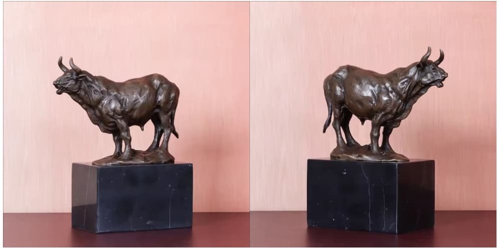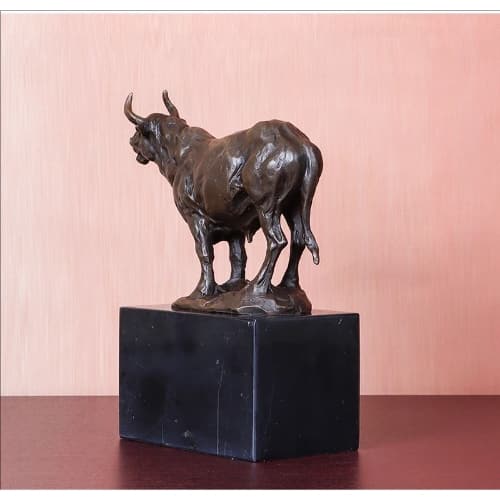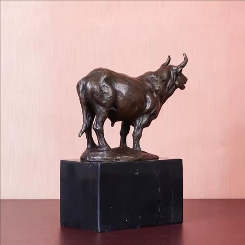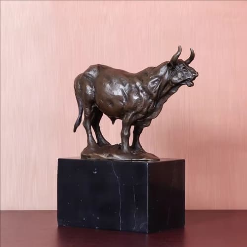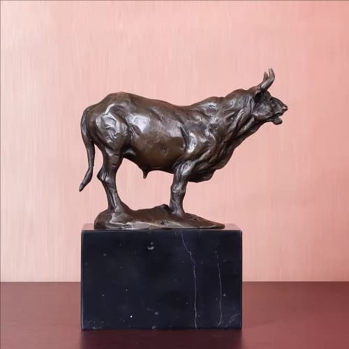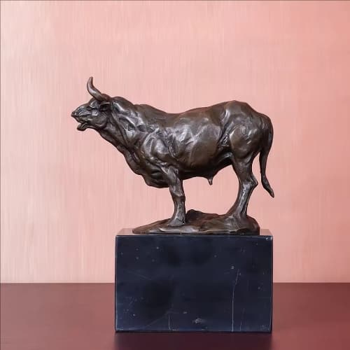 The Little Wild Bull Bronze Figurine captures the fearless spirit of a young bull stepping boldly into the world. With its head held high and firm stance, the sculpture symbolizes courage, vitality, and the determination to overcome challenges. It reflects the raw power of nature and the ambitious drive of those starting new journeys—making it a meaningful decorative piece for offices, studies, or modern interiors.