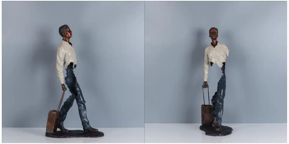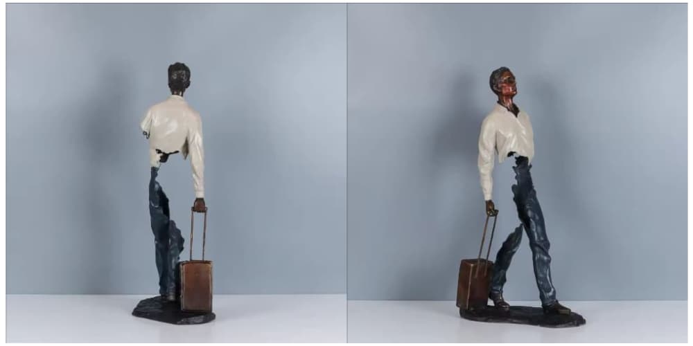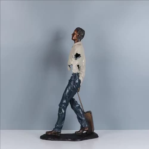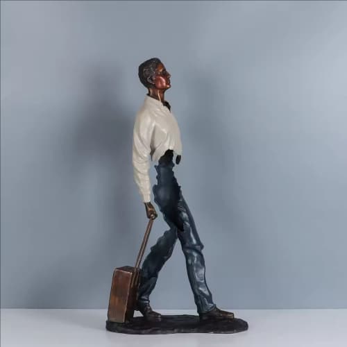 In this sculpture, the traveler walks forward with steady determination. His posture reflects the spirit of humanity—always moving, always searching. Whether he is beginning a new journey or returning from one, his silhouette symbolizes freedom, resilience, and the beauty of the unknown.