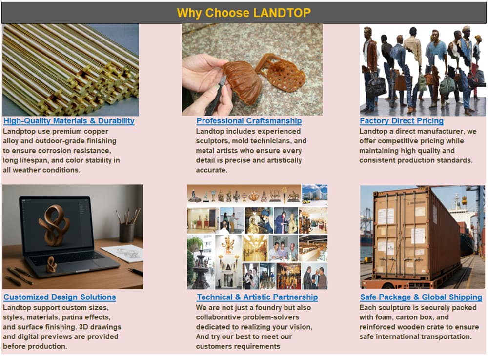 Every bronze sculpture is professionally packed with great care. We first use thick pearl cotton to cushion the artwork and place it inside a high-quality carton. After sealing the carton, it is further secured inside a tailor-made wooden case. This layered packaging method ensures maximum safety and stability throughout storage, handling, and international shipping. Once the goods are shipped, we will keep you updated on the progress and remind you of the estimated arrival time and any related matters.