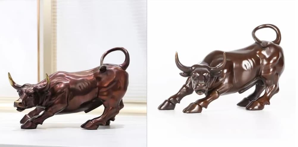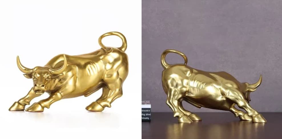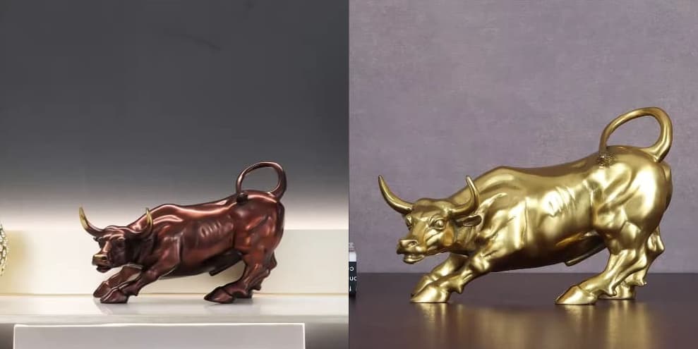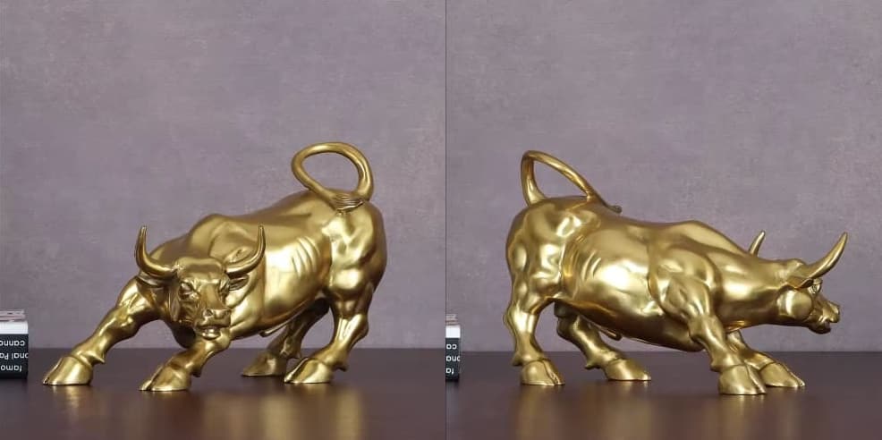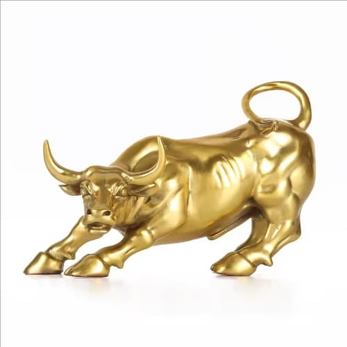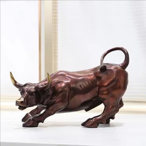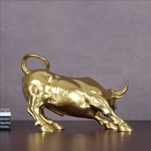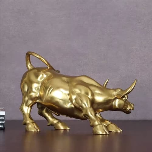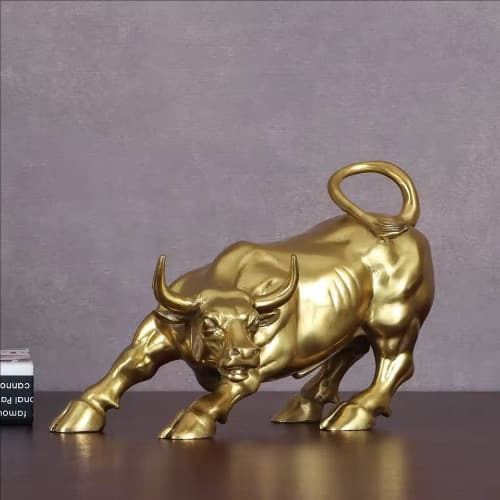 Wall Street Bull Statue Brass Charging Bull Animal Sculpture Bronze&Gold Large for Home Office Decoration